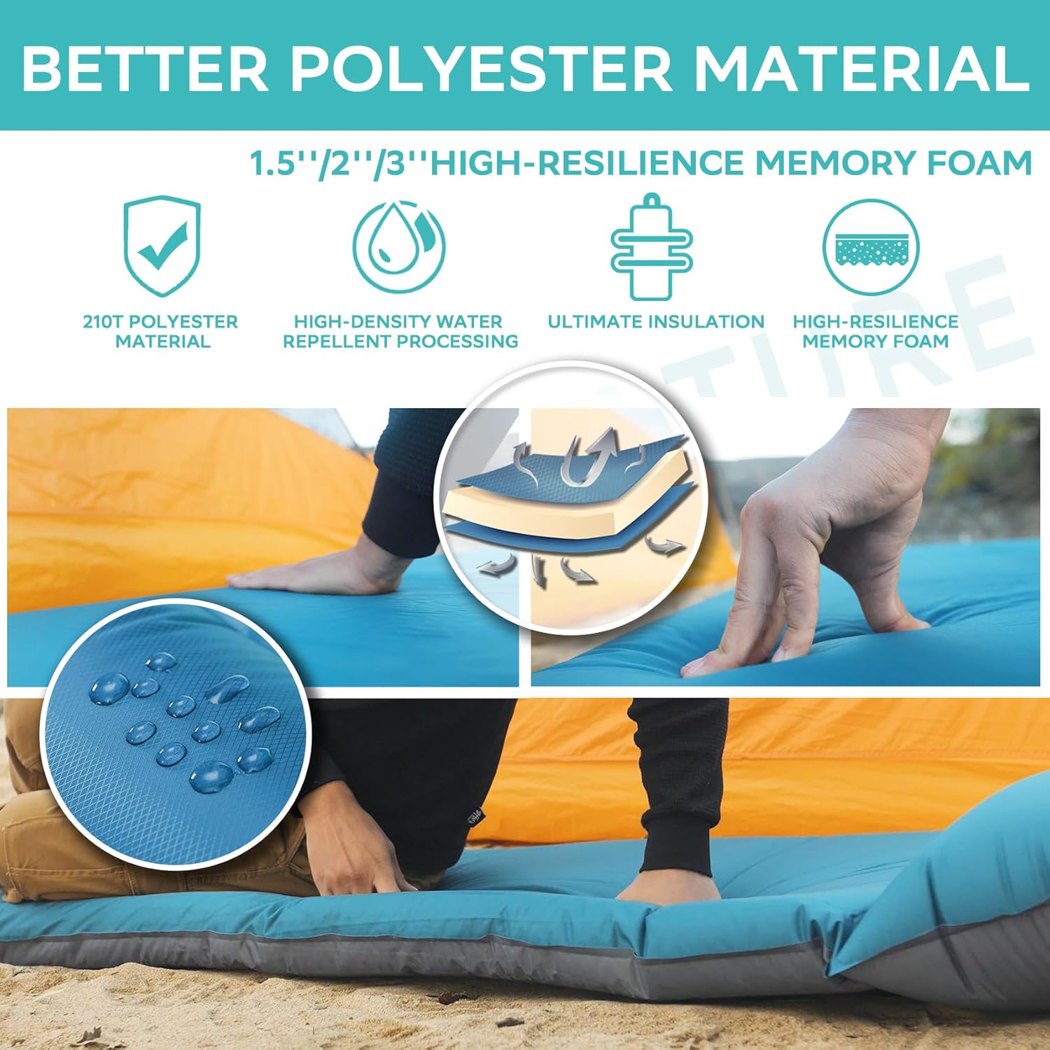 Clostnature Self Inflating Sleeping Pad for Camping – 1.5/2/3 inch Camping Pad, Lightweight Inflatable Camping Mattress Pad, Insulated Foam Sleeping Mat for Backpacking, Tent, Hammock