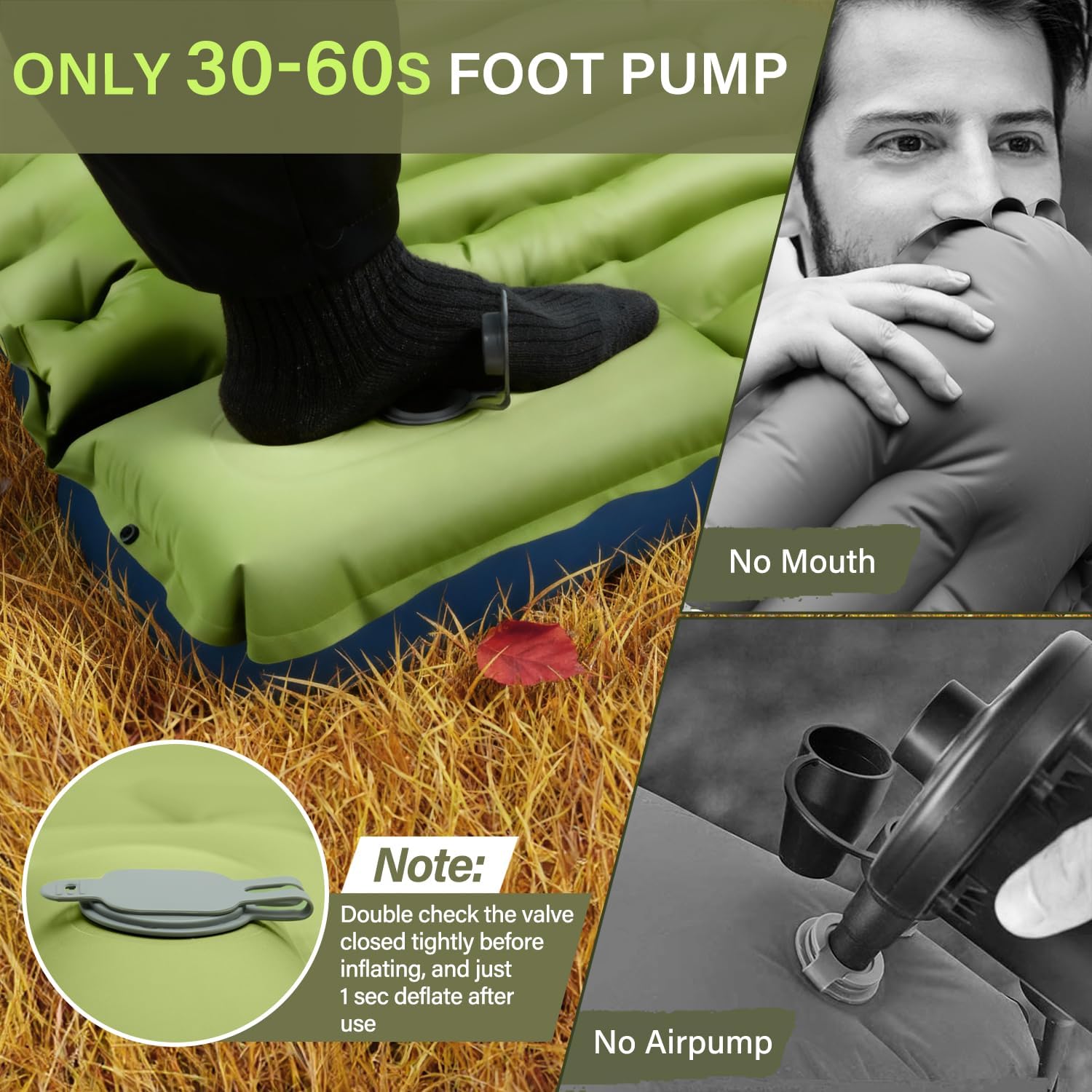 FUN PAC Camping Sleeping Pad, Ultralight Camping Mat with Pillow, Built-in Foot Pump Inflatable Sleeping Pads Compact for Camping Backpacking Hiking Traveling Tent,Single,Green