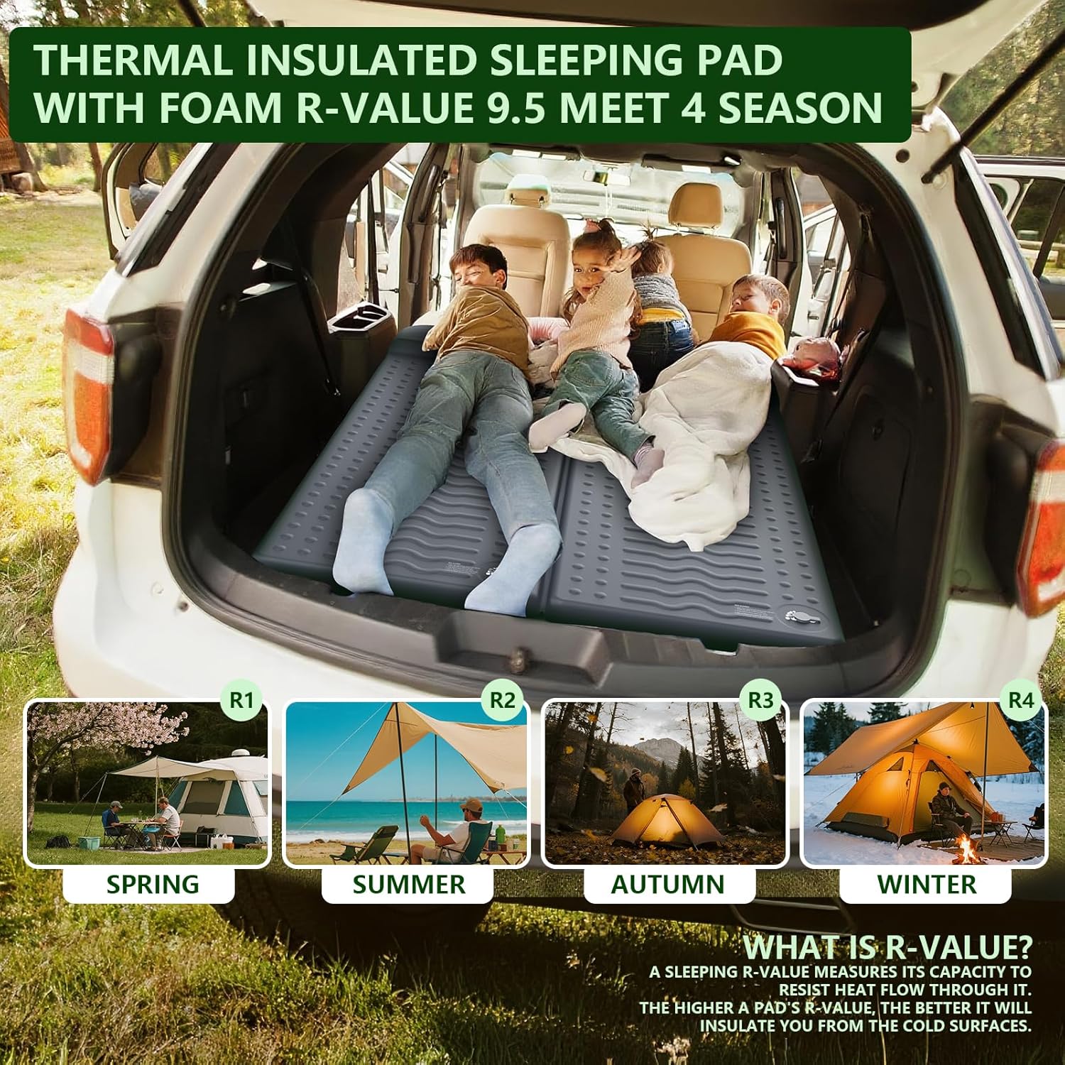 HiiPeak Memory Sleeping Pad, Compact 3″ Thick Foam Sleeping Mats with Pillow, 9.5 R-Value Insulated Camping Mattress Pad, Easy Inflate & Deflate, Inflatable Sleep Mat for Backpacking Hiking Car Tent