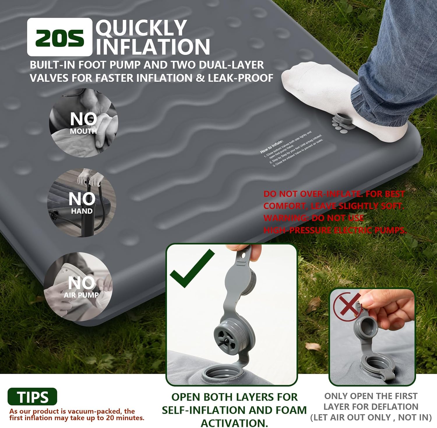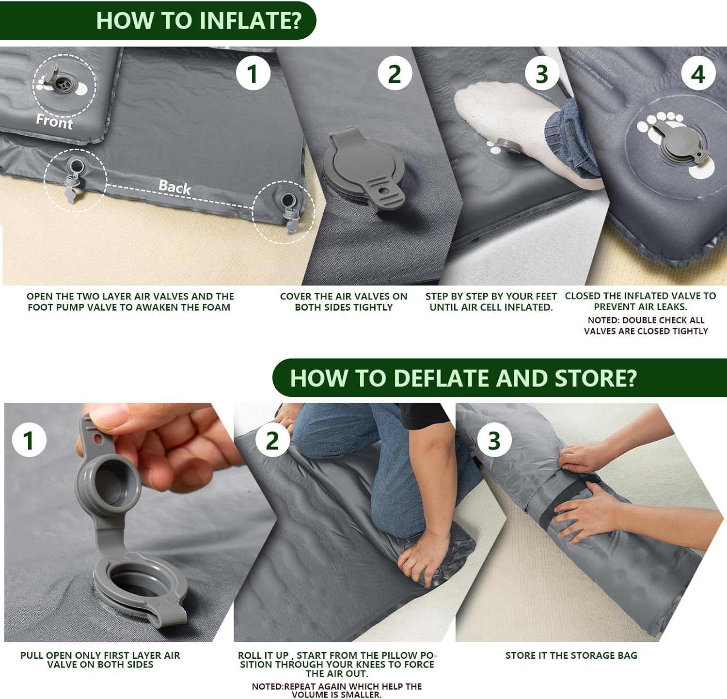 HiiPeak Memory Sleeping Pad, Compact 3″ Thick Foam Sleeping Mats with Pillow, 9.5 R-Value Insulated Camping Mattress Pad, Easy Inflate & Deflate, Inflatable Sleep Mat for Backpacking Hiking Car Tent