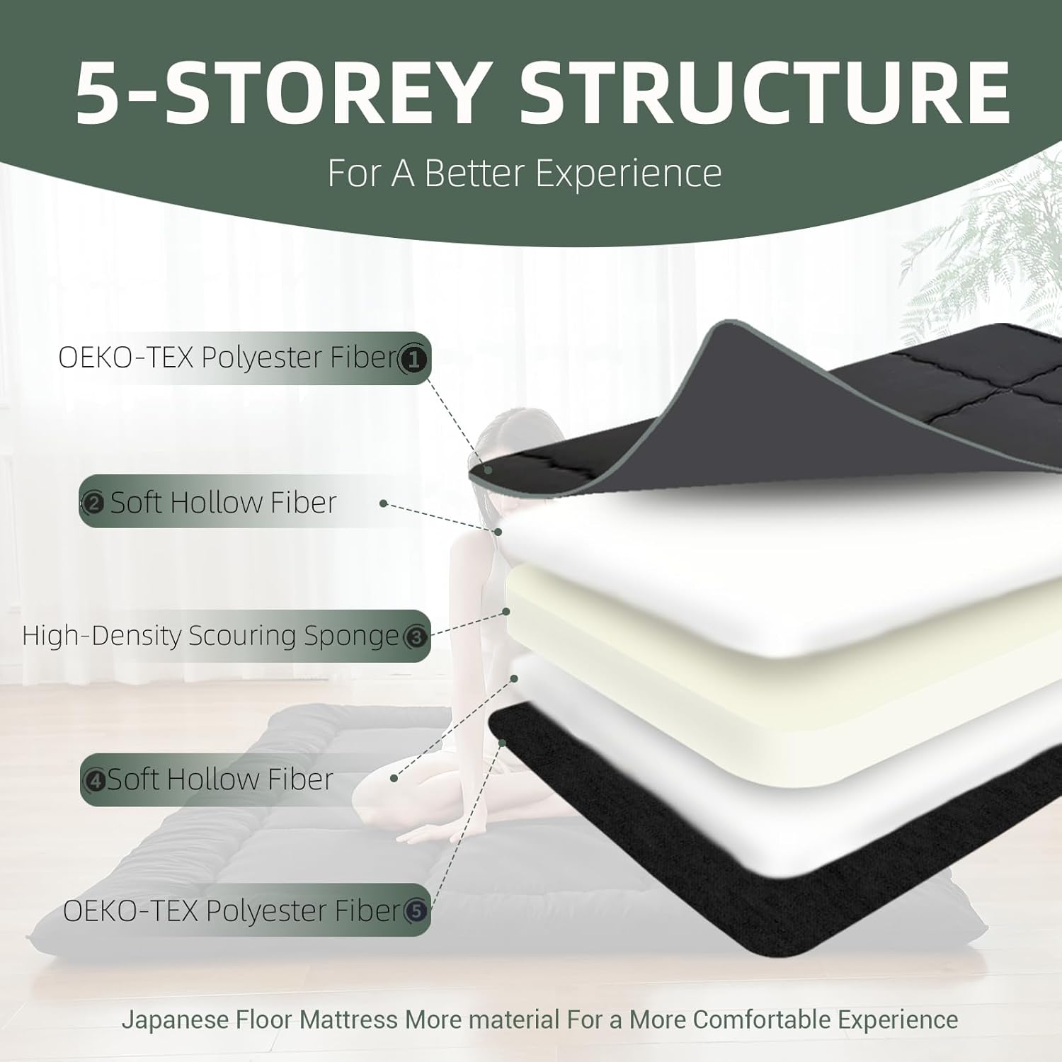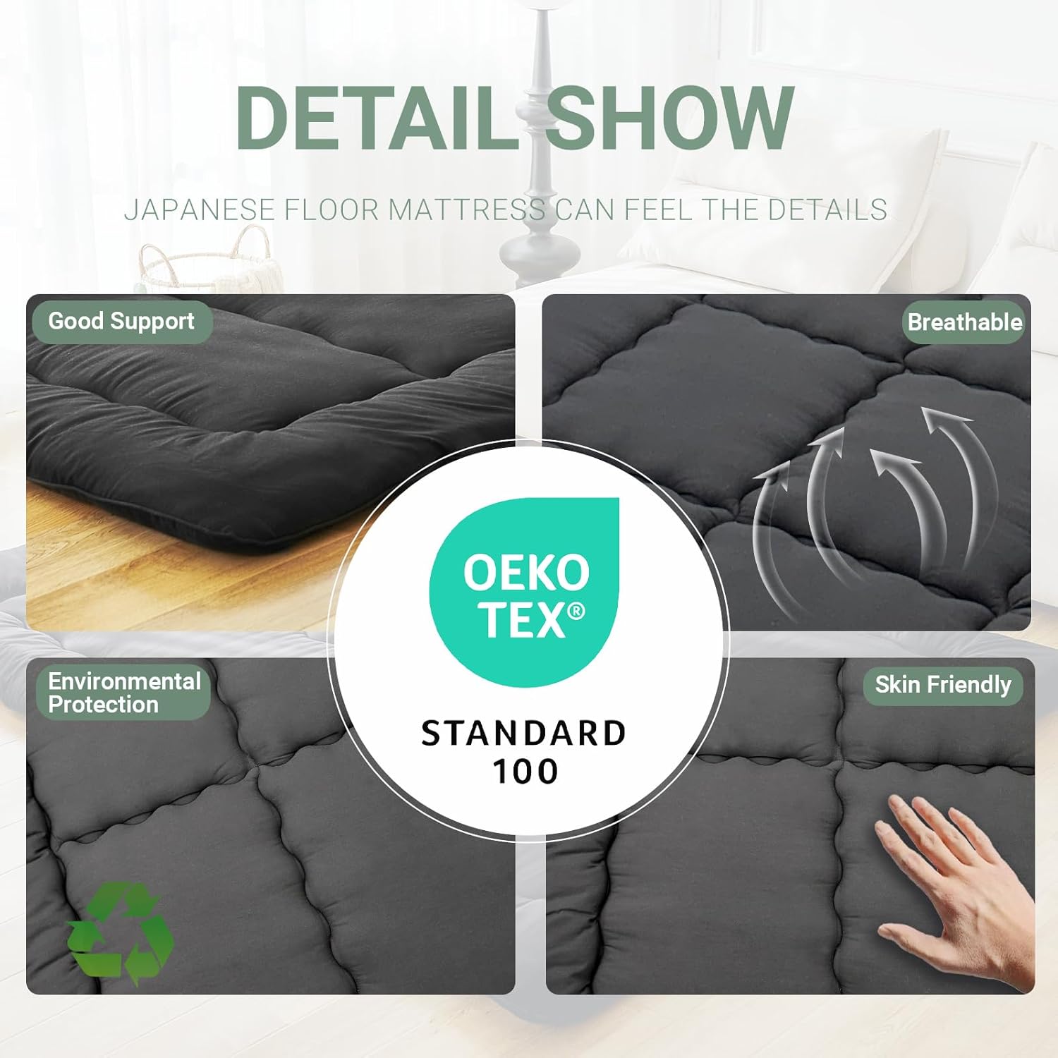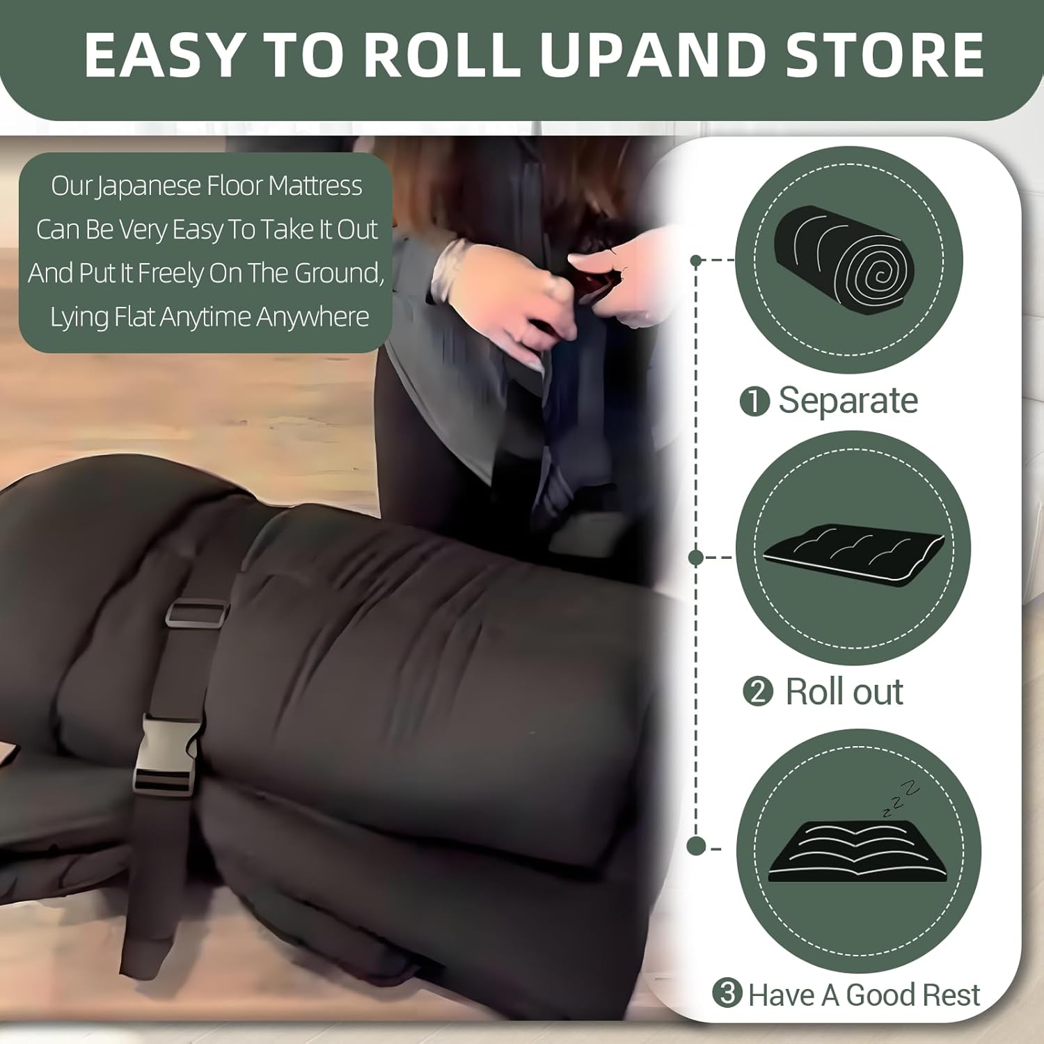 Japanese Floor Mattress Futon Mattress,3″ Foldable Tatami Sleeping Pad for Adults & Kids,100% High Density Foam Comfortable Floor Mattress Twin Size 39″x 80″,Ideal for Comfort and Support,Black