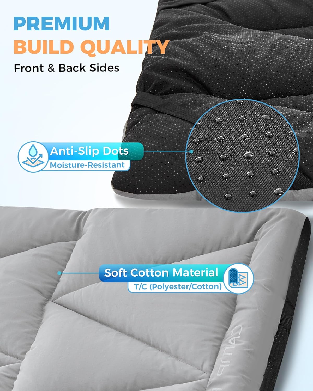 KingCamp Cot Mattress, Portable Lightweight Camping Sleeping Mat Soft Comfortable Non-Slip Cot Pad for Camp Cot, RV Bunk & Twin Beds