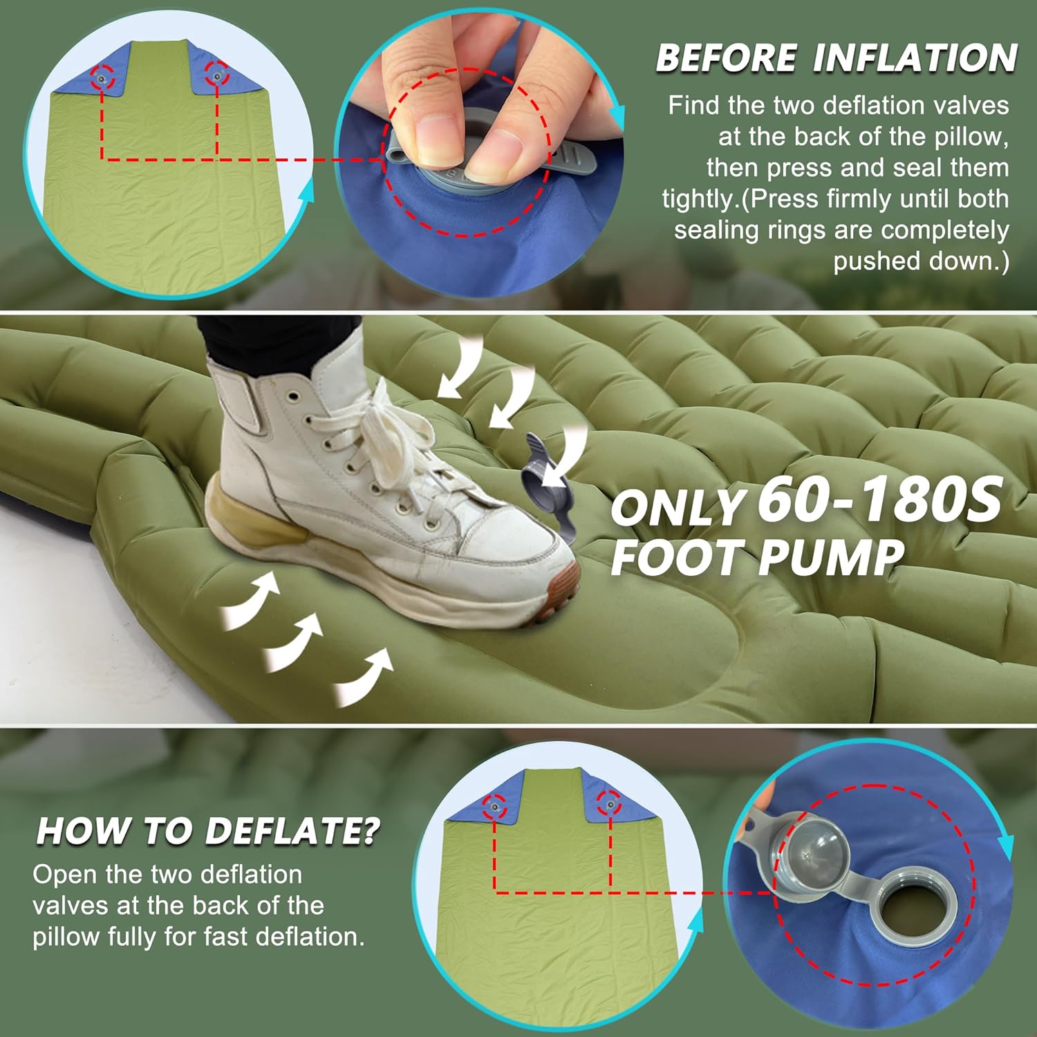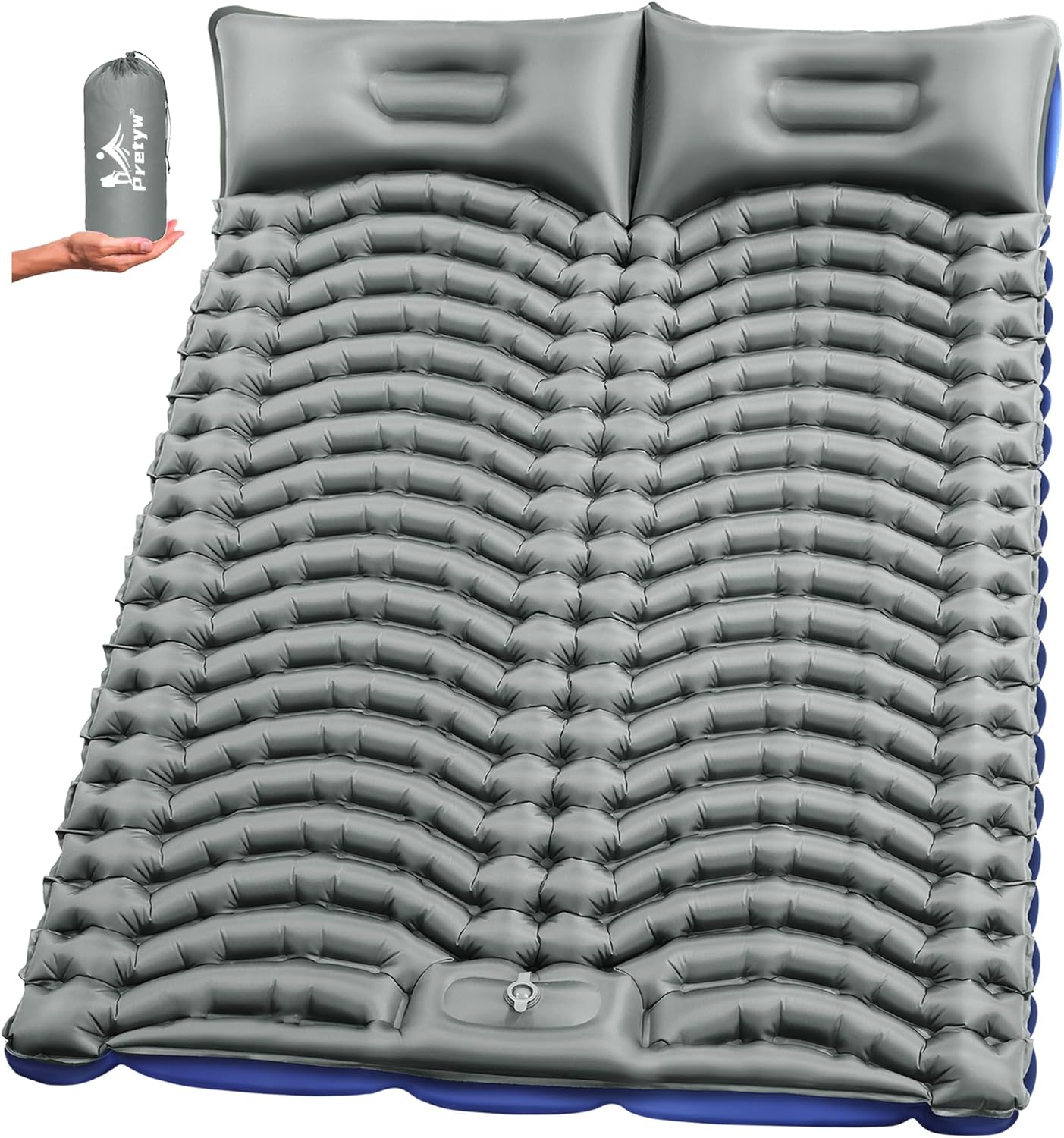 Pretyw Double Sleeping Pad for Camping – Ultralight Camping Mattress with Pillow, Built-in Foot Pump, Compact Inflatable 2-Person Portable Mat for Backpacking, Hiking, Car Traveling, Beach, Tent