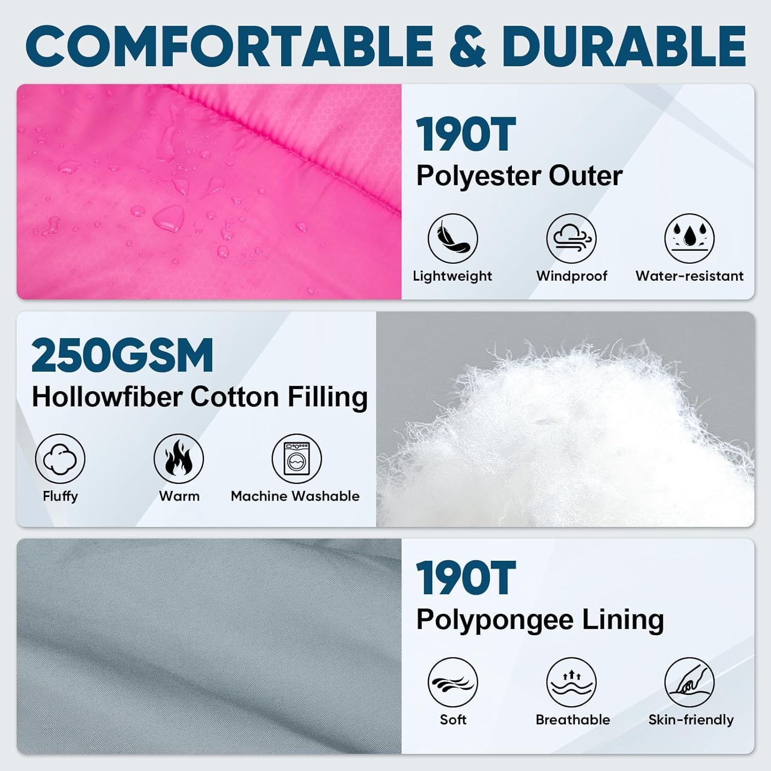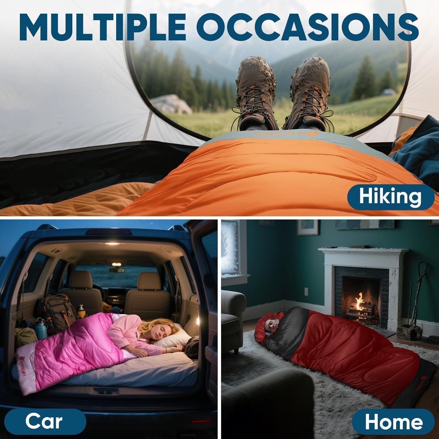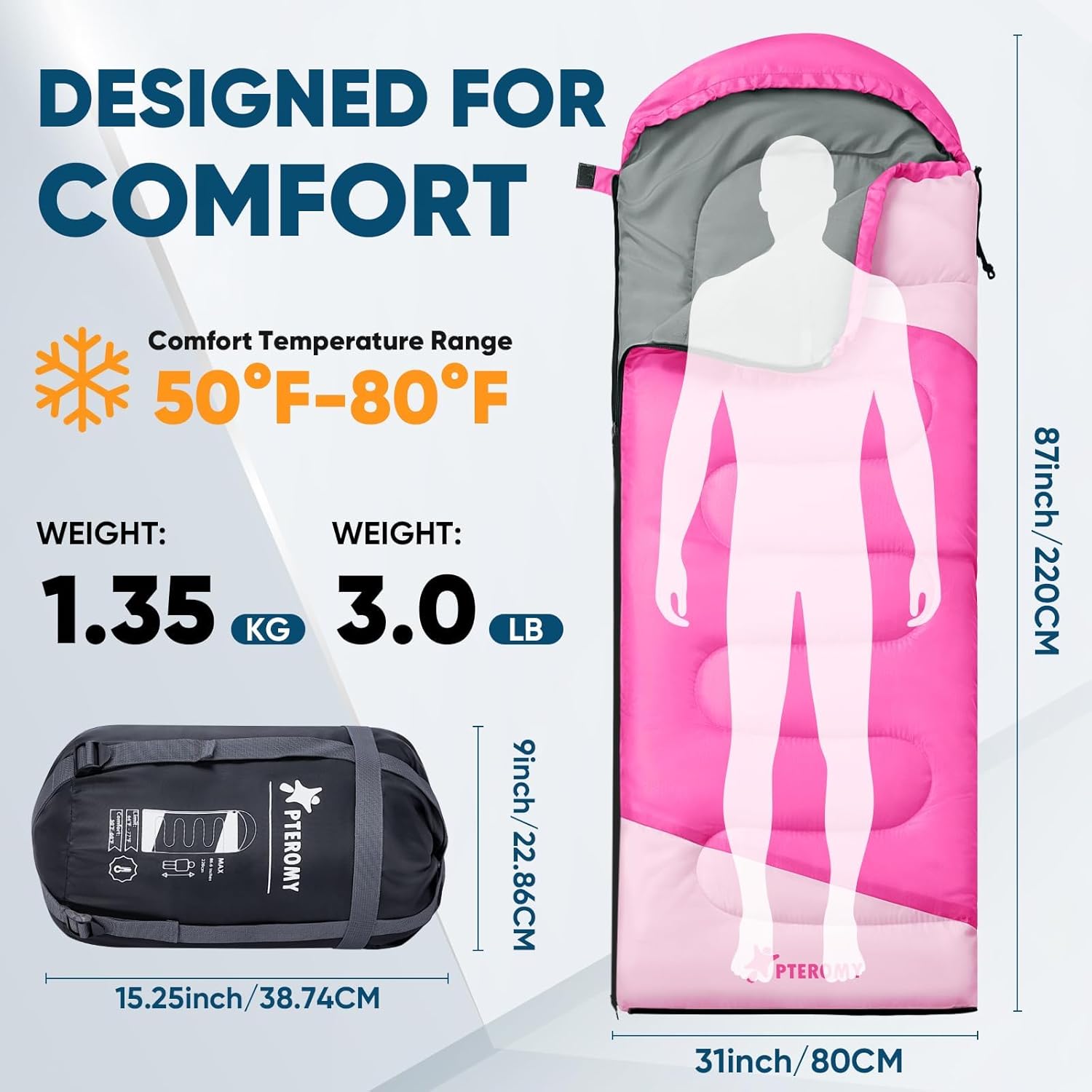 PTEROMY Sleeping Bags for Adults, Lightweight and Machine Washable, Water Resistant Backpacking Camping Sleeping Bag for Warm Cold Weather, Camping Essentials for Hiking Travel