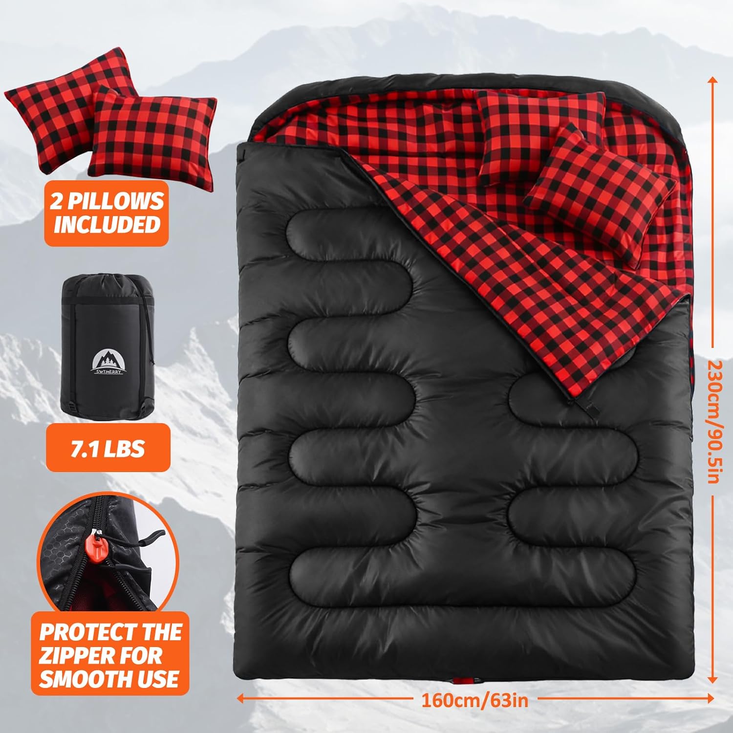 Swtmerry Double Sleeping Bag for Adults with 2 Pillows, Big & Tall Queen Size XL Sleeping Bag for 2 Person, Waterproof & Lightweight Warm for 3 Seasons, Cold Weather,Camping, Hiking & Backpacking