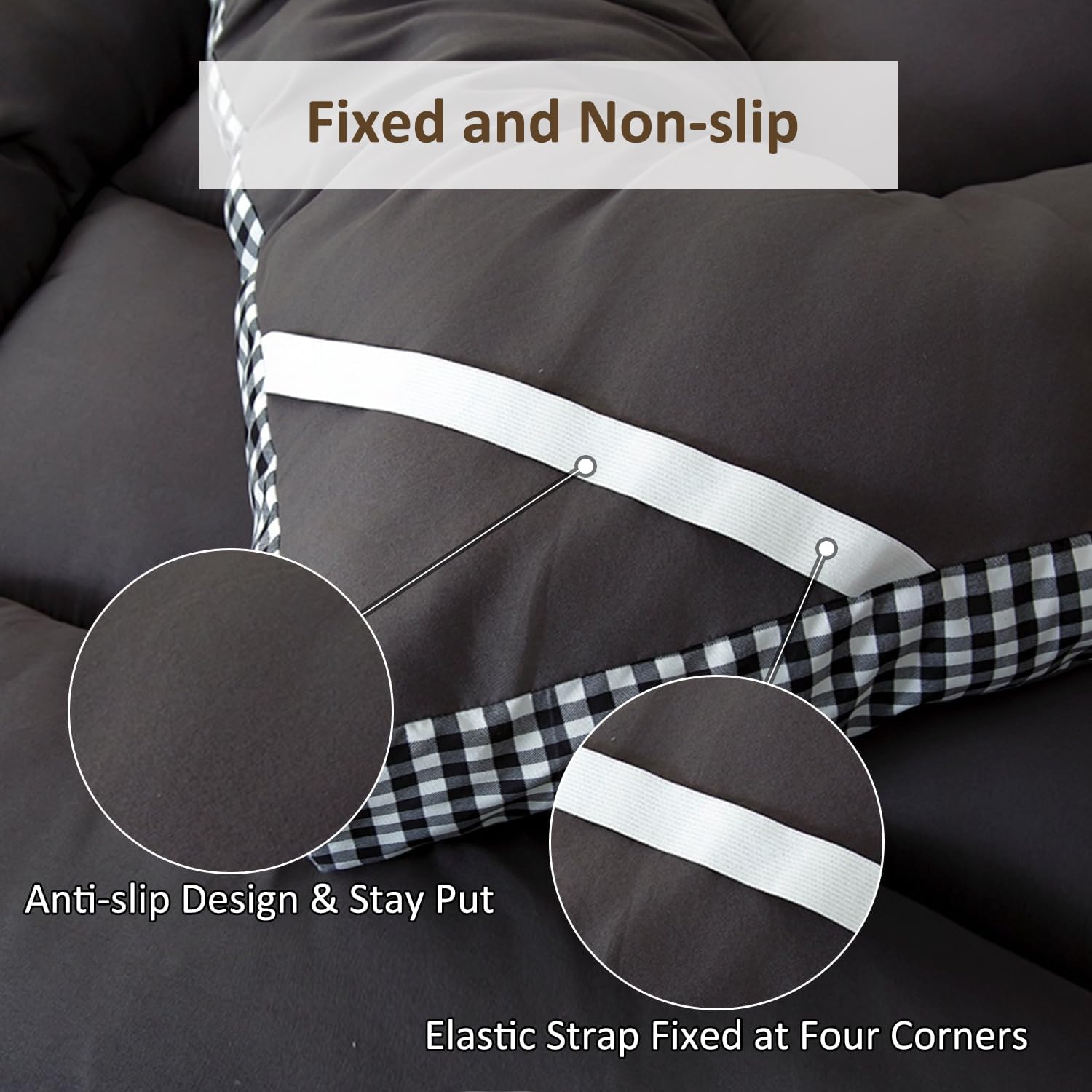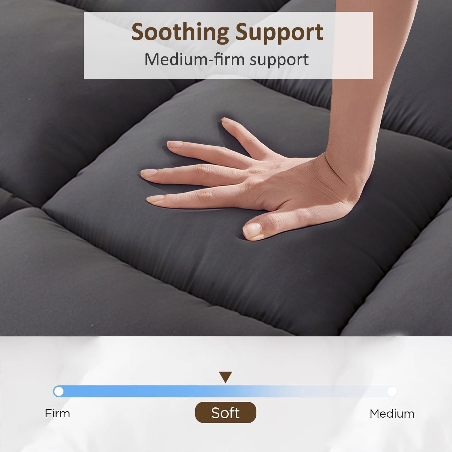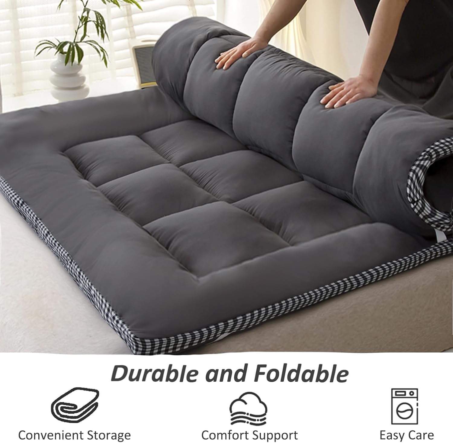 Thick Mattress Topper Full Size – Non-Slip Mattress Pad Cover for Back Pain Breathable Folding Sleeping Pad Machine Washable Mattress Protector (54×75 inch,Black)