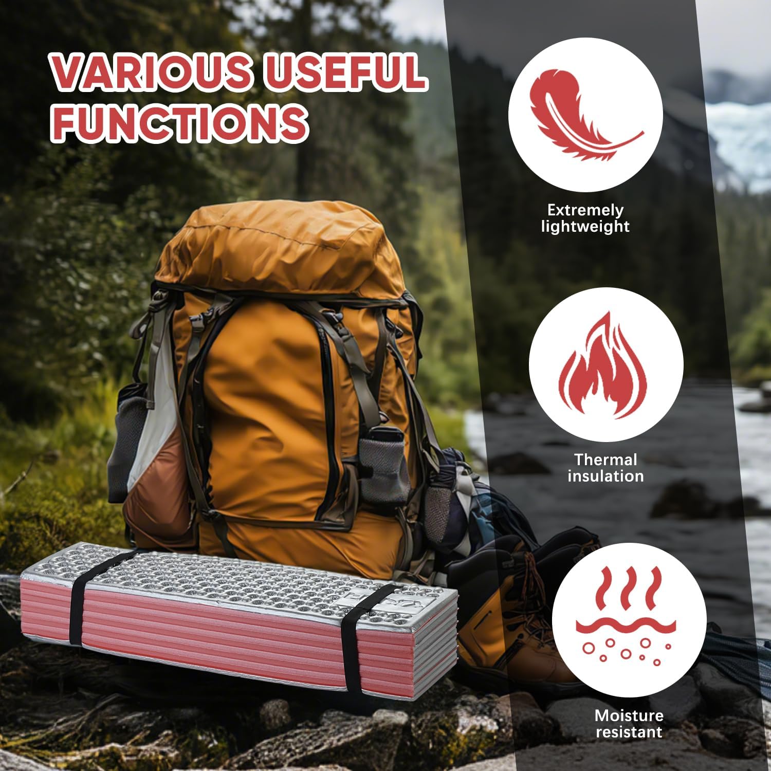 Ultralight Foam Sleeping Pad, Waterproof Closed Cell Foam Pad for Superior Insulation, Folding Sleeping Mat for Compact Storage, Foldable and Portable for Hiking and Camping