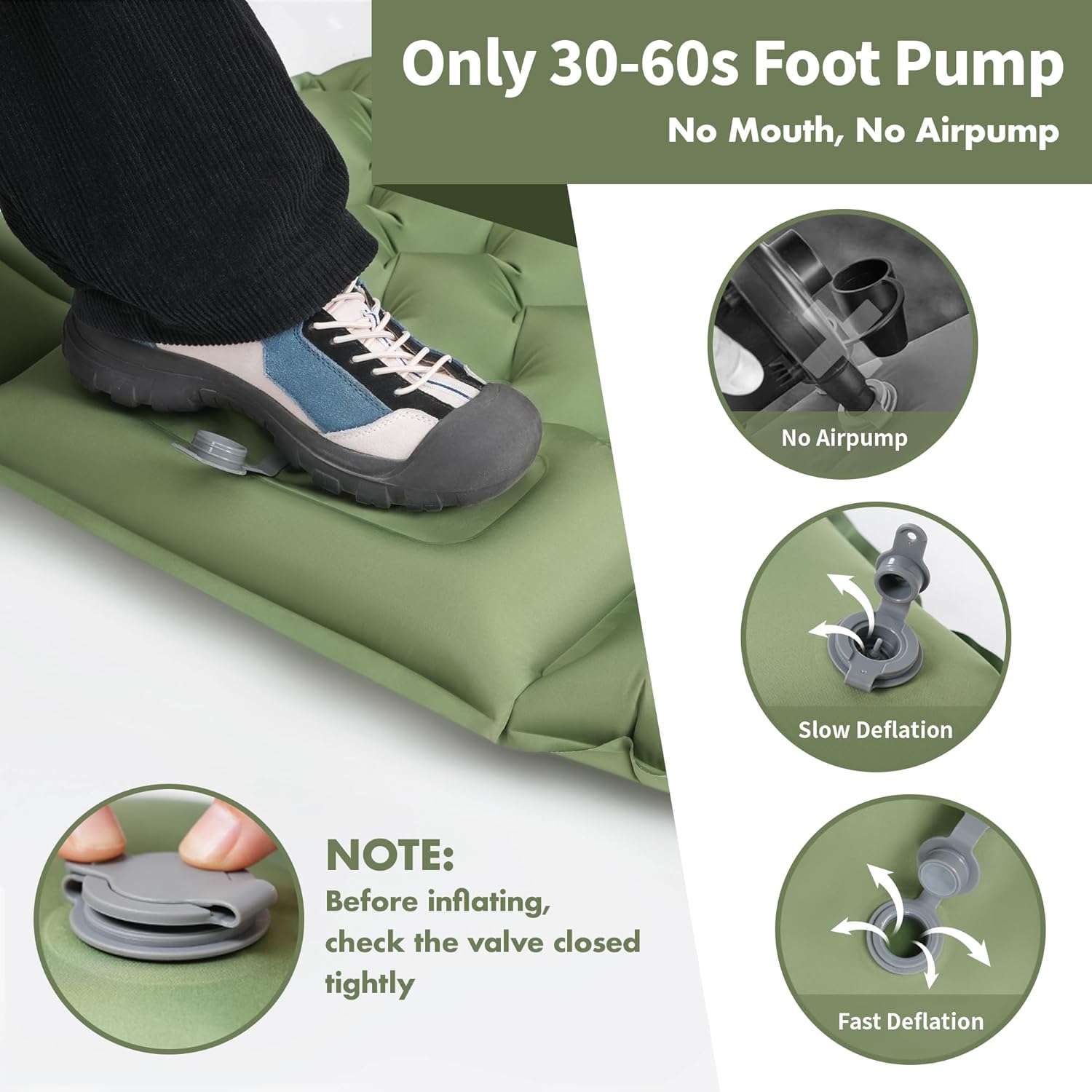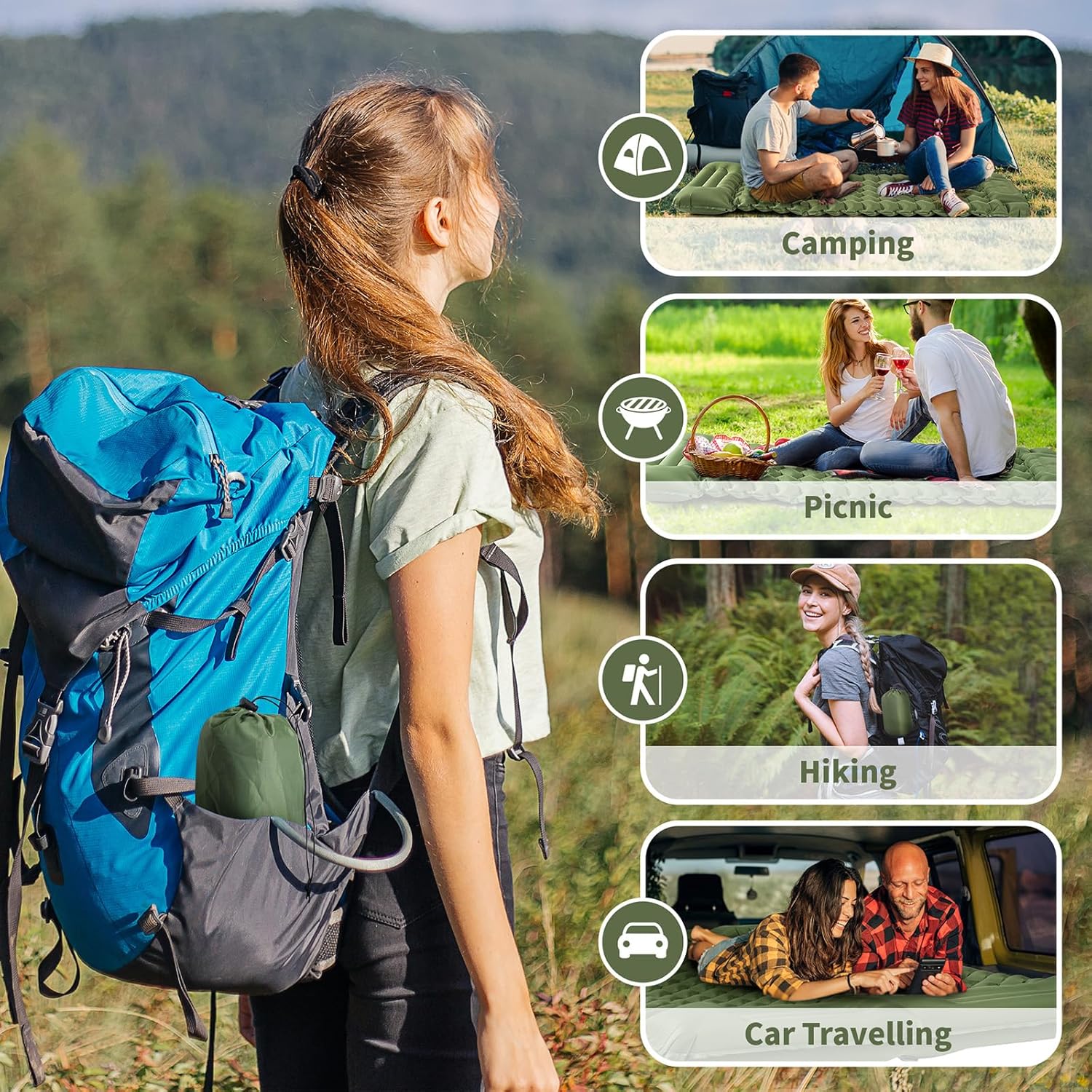 WILDOMS Sleeping Pad for Camping – 4u201D Thick Inflatable Camping Mat with Built-in Pump & Pillow, Ultralight Self Inflating Camping pad, Backpacking Sleeping Mat for Hiking, Tent, Traveling